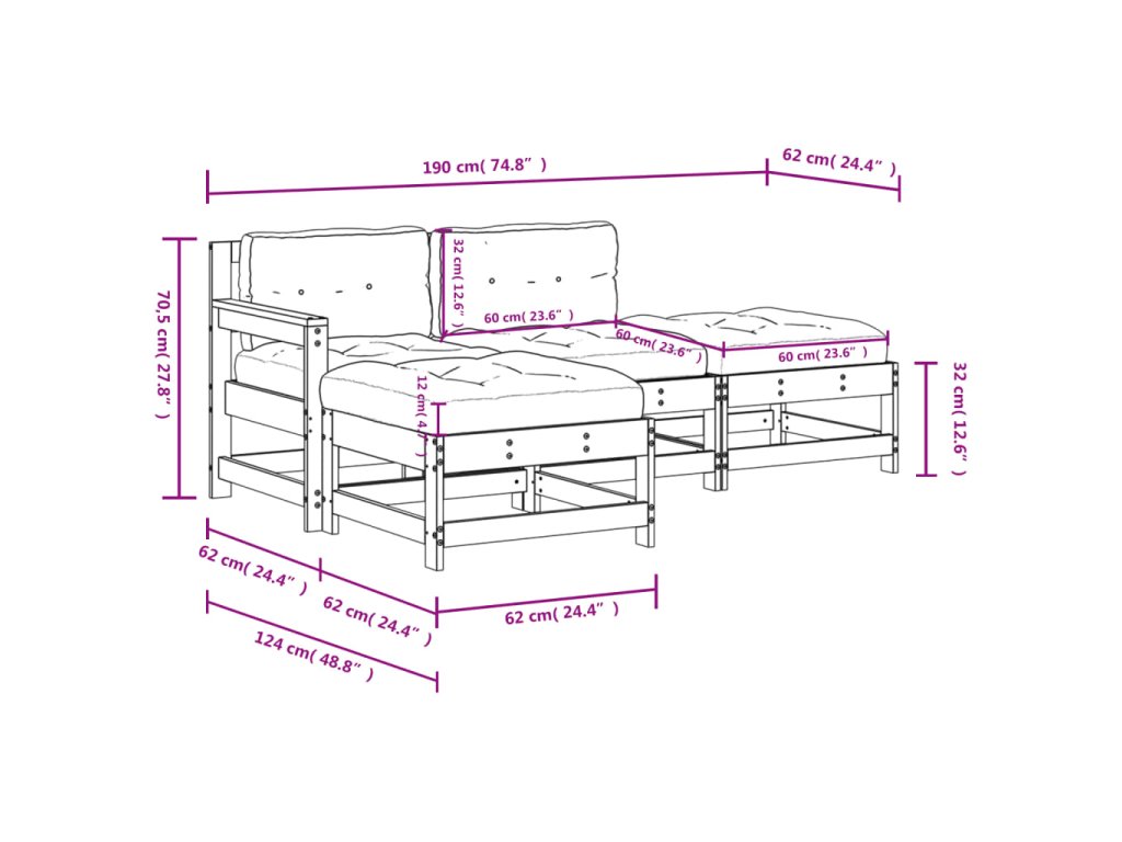 - Rozměry středové pohovky: 62 x 62 x 70,5 cm (D x Š x V)