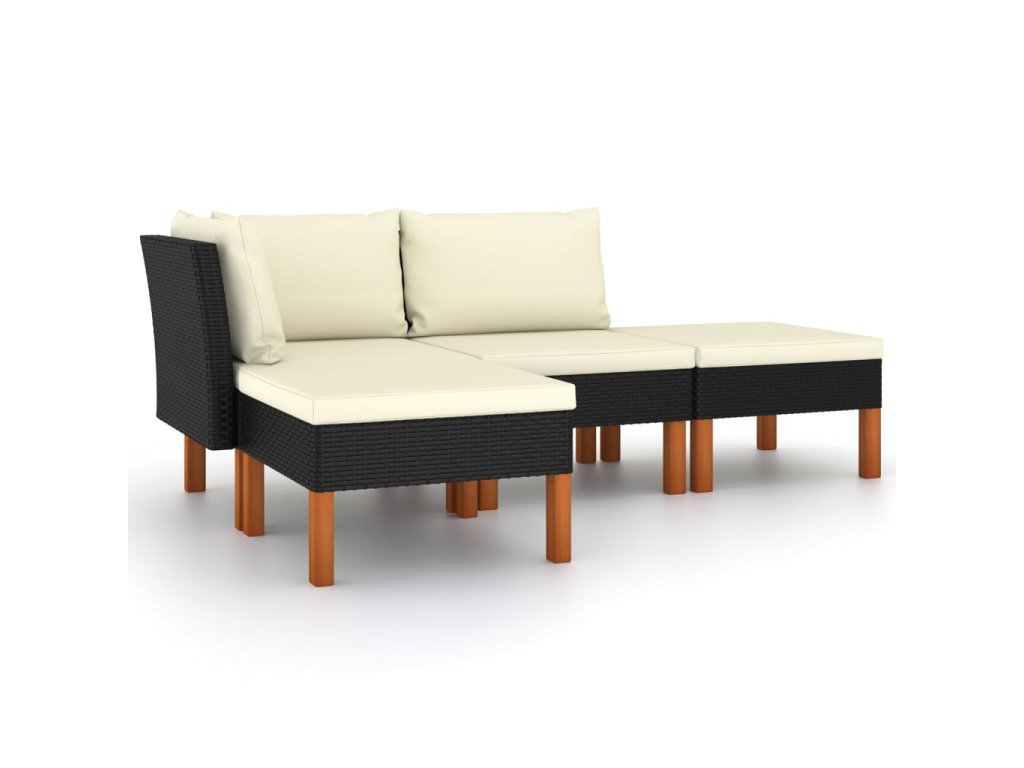 Set zahradních sedaček má práškově lakovaný ocelový rám, na který je napletený PE ratan, je tudíž klimaticky odolný a snadno se čistí. Masivní nohy z eukalyptového dřeva přispívají k robustnosti a stabilitě setu. Zahradní sedací souprava je doplněná hustě polstrovanými polstry pro maximální pohodlí. Potahy polstrů mají zip, takže je můžete snadno stáhnout a vyprat. Tuto zahradní sedací soupravu s lehkou konstrukcí lze bez námahy přemisťovat, jednoduše ji tedy uzpůsobíte jakémukoli prostředí.