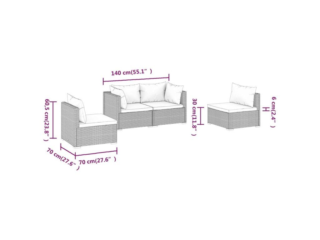 - Rozměry (jednotlivé): 70 x 70 x 60,5 cm (D x Š x V)