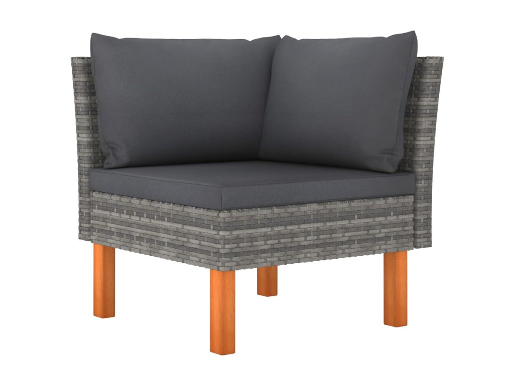 - Materiál: PE ratan, práškově lakovaná ocel, masivní eukalyptové dřevo s olejovaným povrchem