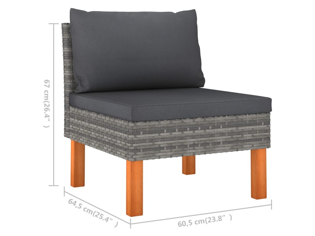 - Rozměry střední pohovky: 60,5 x 64,5 x 67 cm (Š x H x V)