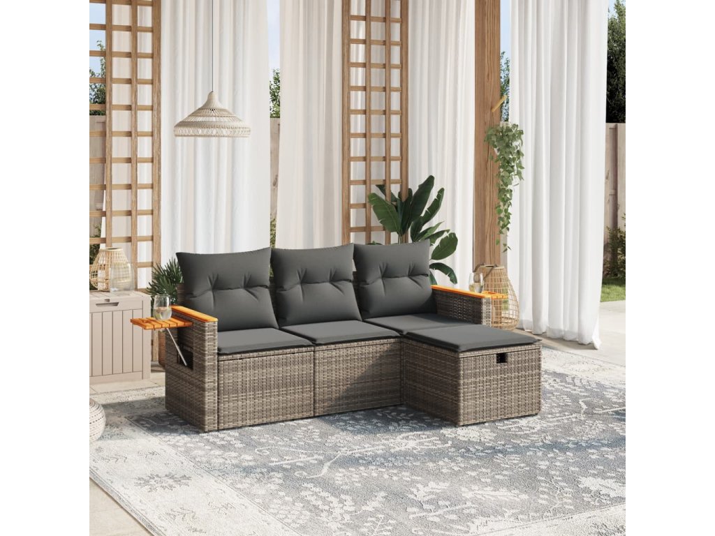 - Pohodlné sezení: Tento venkovní nábytek se silně polstrovanými poduškami a polštáři nabízí pohodlné sezení.