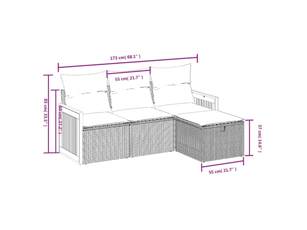 Tato zahradní sedací souprava je dokonalým doplňkem vaší zahrady, terasy nebo dvorku a poskytne vám pohodlné a příjemné místo, kde si můžete povídat s rodinou a přáteli nebo jen tak odpočívat a užívat si pobyt venku.