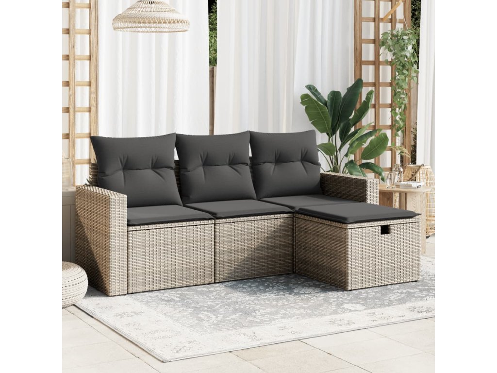 Tato zahradní sedací souprava je dokonalým doplňkem vaší zahrady, terasy nebo dvorku a poskytne vám pohodlné a příjemné místo, kde si můžete povídat s rodinou a přáteli nebo jen tak odpočívat a užívat si pobyt venku.