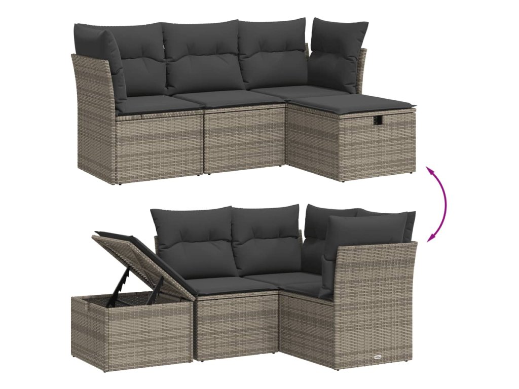 - Modulární design: Tato sada venkovního nábytku se vyznačuje modulární konstrukcí, je tedy zcela flexibilní a lze ji snadno přemisťovat, takže si můžete uspořádat venkovní nábytek dle vašich potřeb.