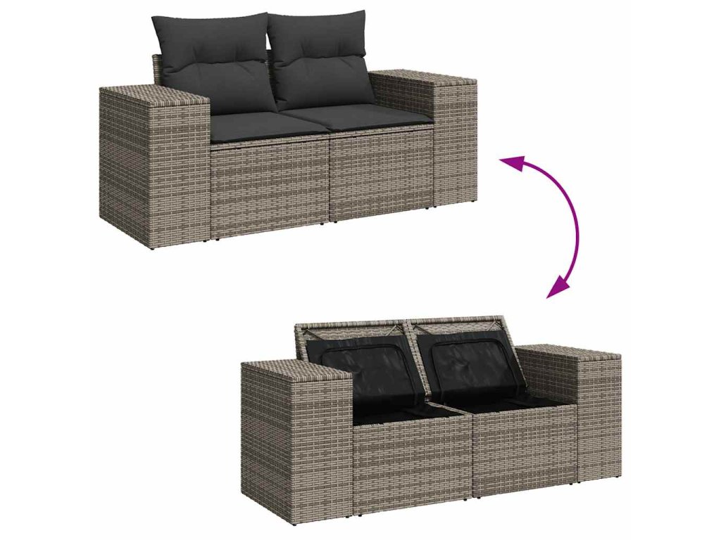 - Úložný prostor s voděodolným vakem: Zahradní nábytek má úložný prostor pod sedákem, který je opatřen voděodolnou vložkou a poslouží vám k ukládání podušek, hraček a dalších věcí. Vnitřní vak lze bezpečně připevnit k venkovnímu nábytku pomocí suchého zipu, což zaručí větší stabilitu.