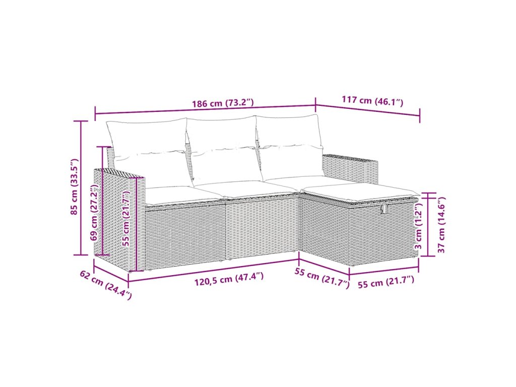 Tato zahradní sedací souprava je dokonalým doplňkem vaší zahrady, terasy nebo dvorku a poskytne vám pohodlné a příjemné místo, kde si můžete povídat s rodinou a přáteli nebo jen tak odpočívat a užívat si pobyt venku.