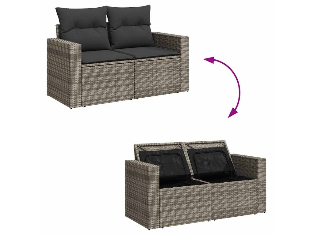 - Úložný prostor s voděodolným vakem: Zahradní nábytek má úložný prostor pod sedákem, který je opatřen voděodolnou vložkou a poslouží vám k ukládání podušek, hraček a dalších věcí. Vnitřní vak lze bezpečně připevnit k venkovnímu nábytku pomocí suchého zipu, což zaručí větší stabilitu.
