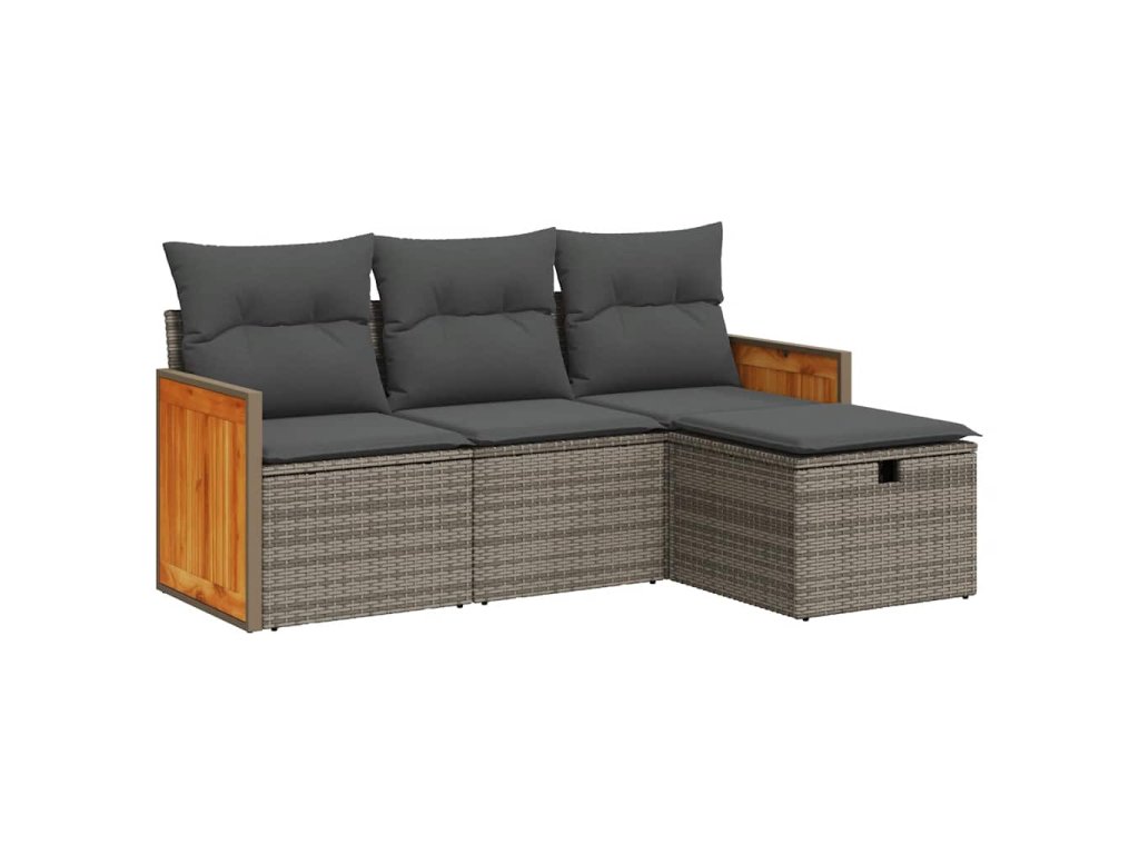 - Materiál: PE ratan, práškově lakovaná ocel, masivní akáciové dřevo s olejovou povrchovou úpravou