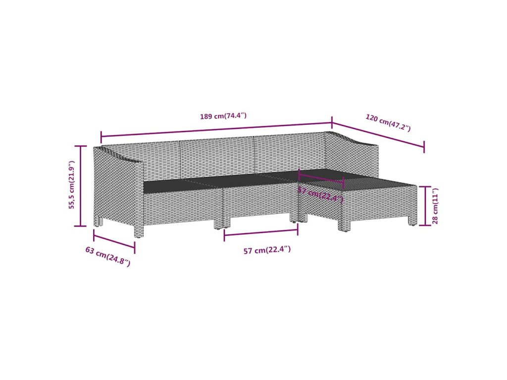 - Rozměry: 57 x 57 x 28 cm (Š x H x V)