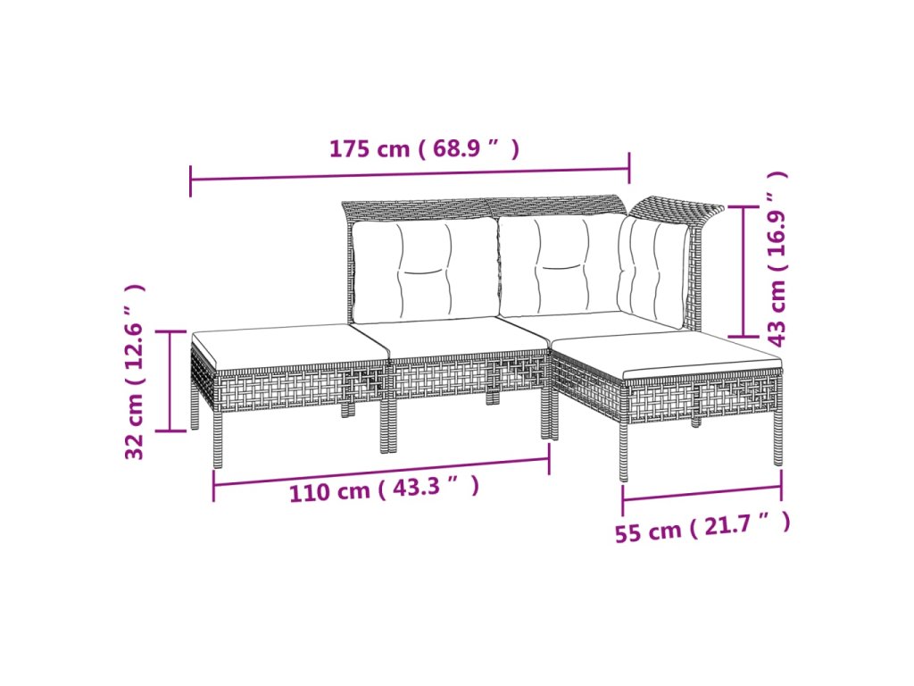 - Materiál: PE ratan, práškově lakovaná ocel