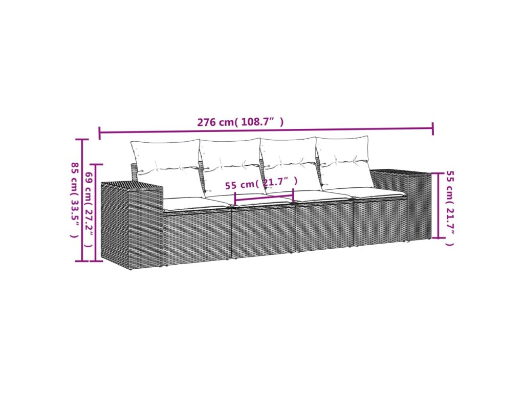 Tato zahradní sedací souprava je dokonalým doplňkem vaší zahrady, terasy nebo dvorku a poskytne vám pohodlné a příjemné místo, kde si můžete povídat s rodinou a přáteli nebo jen tak odpočívat a užívat si pobyt venku.