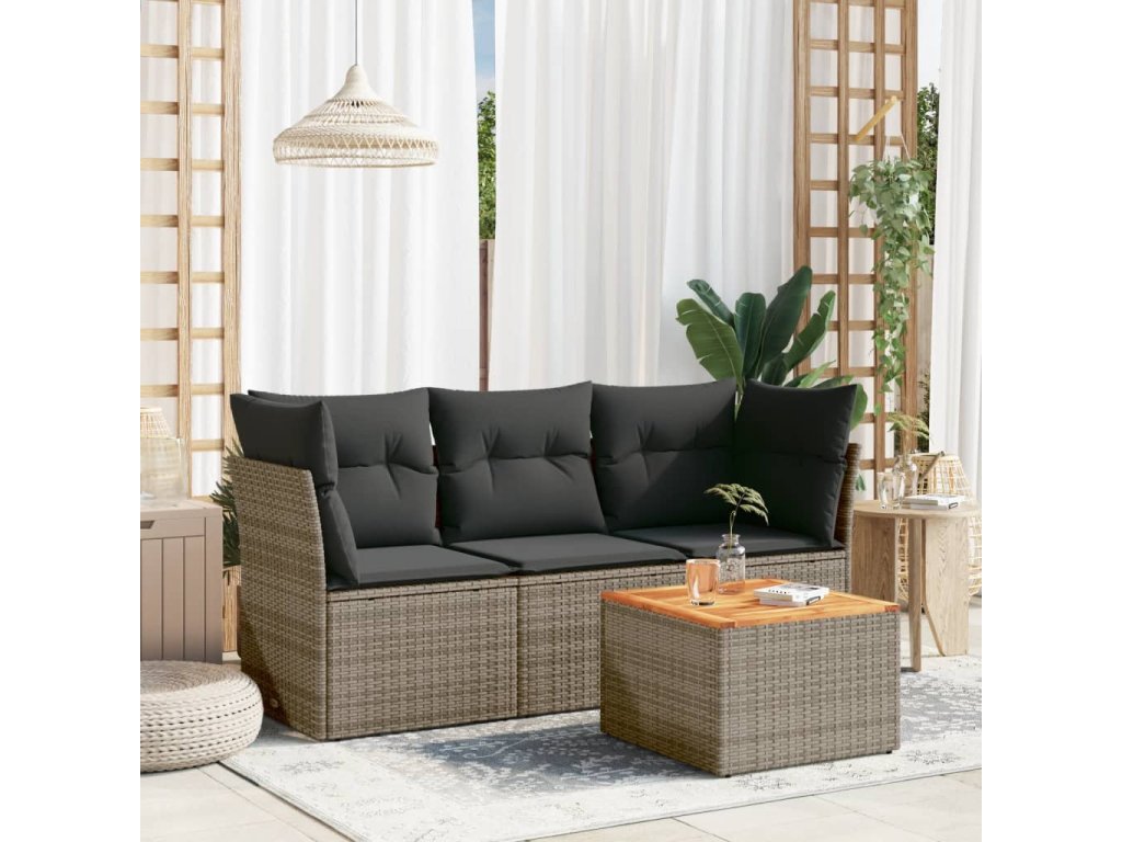 Tato zahradní sedací souprava je dokonalým doplňkem vaší zahrady, terasy nebo dvorku a poskytne vám pohodlné a příjemné místo, kde si můžete povídat s rodinou a přáteli nebo jen tak odpočívat a užívat si pobyt venku.
