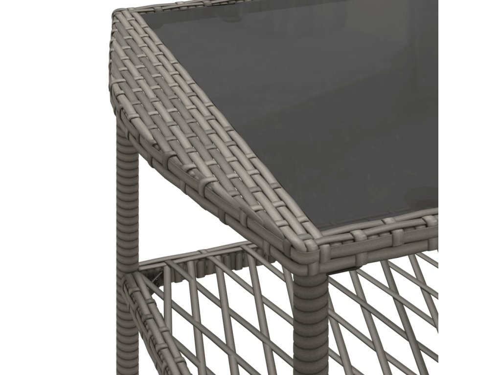 - Materiál: PE ratan, práškově lakovaná ocel, tvrzené sklo