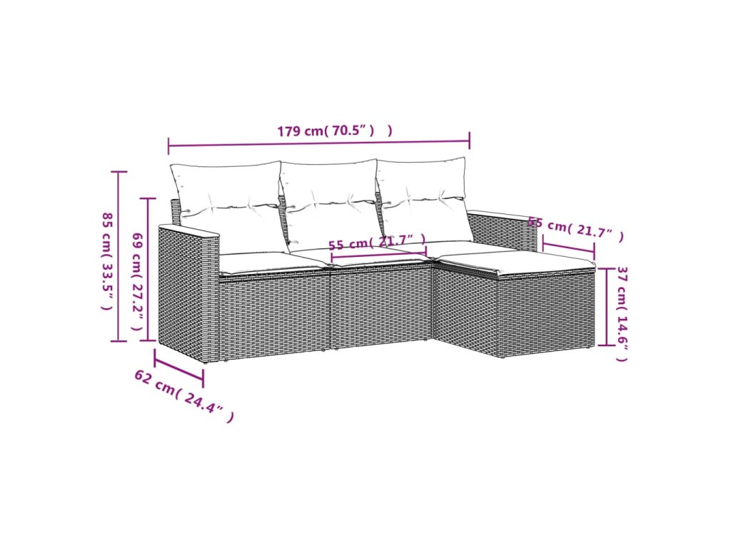 Tato zahradní sedací souprava je dokonalým doplňkem vaší zahrady, terasy nebo dvorku a poskytne vám pohodlné a příjemné místo, kde si můžete povídat s rodinou a přáteli nebo jen tak odpočívat a užívat si pobyt venku.
