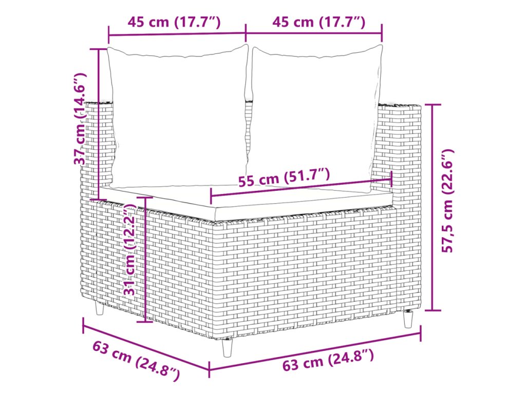 - Rozměry podušky na opěradlo (S): 45 x 37 cm (Š x H)