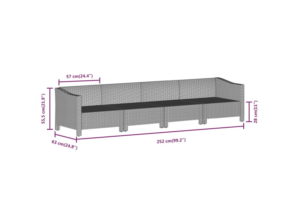 - Celkové rozměry: 252 x 63 x 55,5 cm (Š x H x V)
