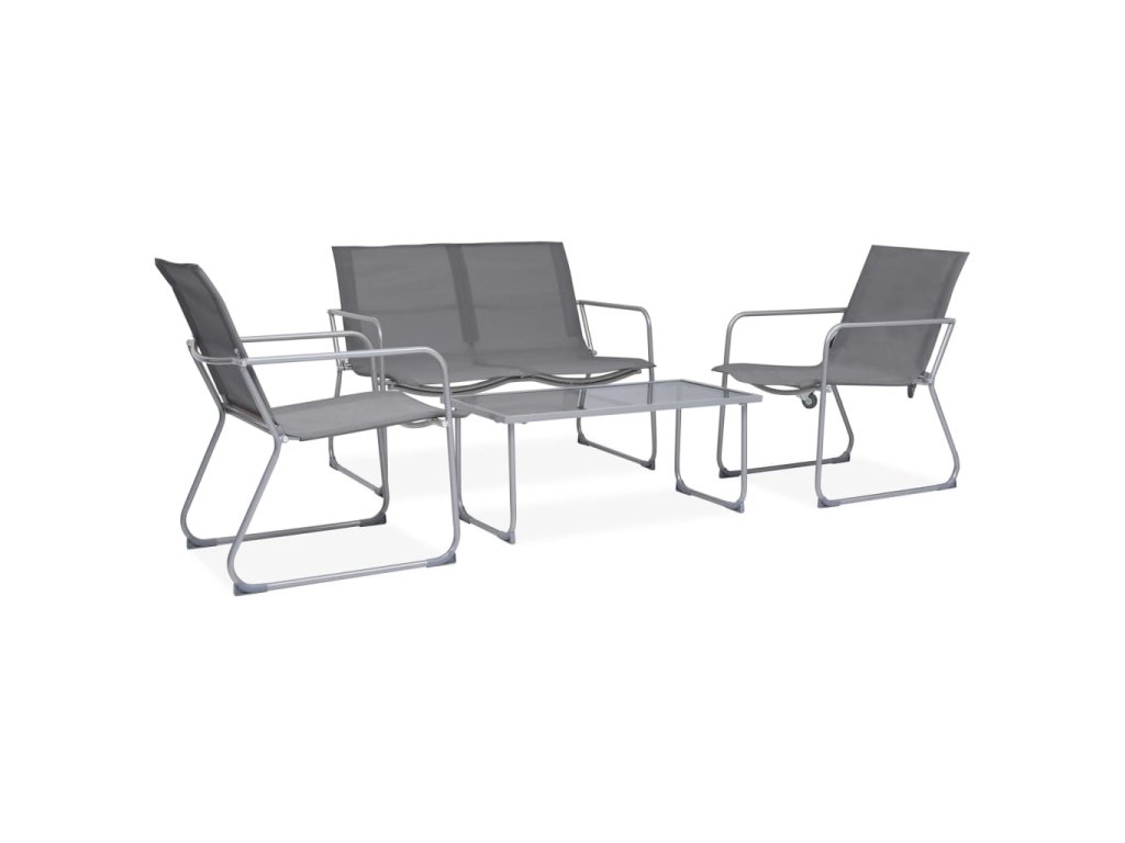 Sedací souprava má ocelový rám, takže je stabilní a odolná. Pohodlná křesla jsou čalouněná textilenem, který se snadno čistí. Jednoduchá elegance této sady nábytku promění každodenní posezení s šálkem kávy v nezapomenutelný zážitek.
