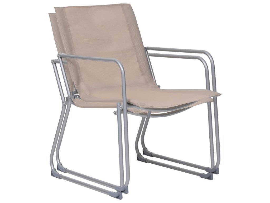 Sedací souprava má ocelový rám, takže je stabilní a odolná. Pohodlná křesla jsou čalouněná textilenem, který se snadno čistí. Jednoduchá elegance této sady nábytku promění každodenní posezení s šálkem kávy v nezapomenutelný zážitek.