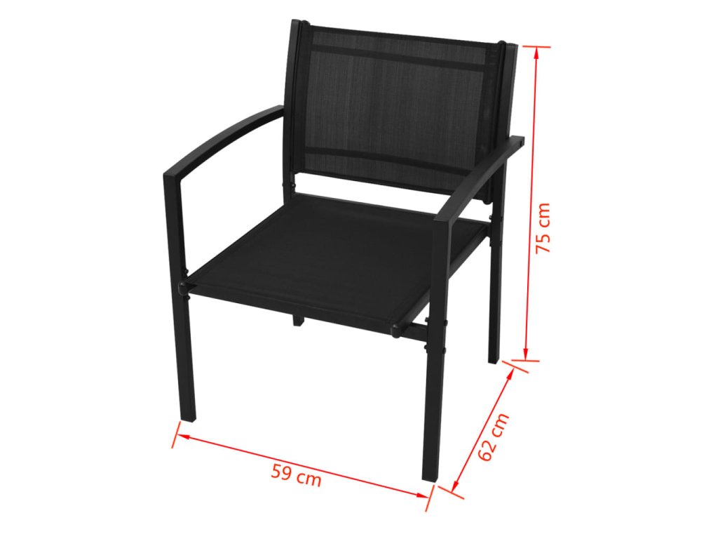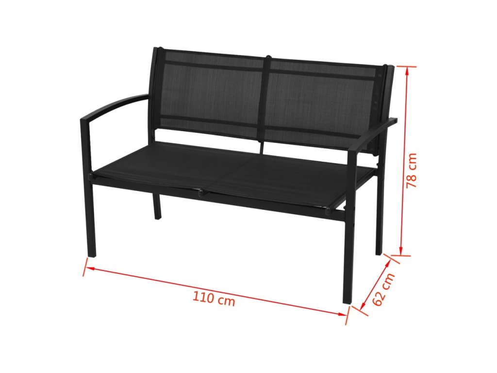 - Materiál křesel a lavičky: ocelový rám s práškovým nástřikem + textilenová tkanina