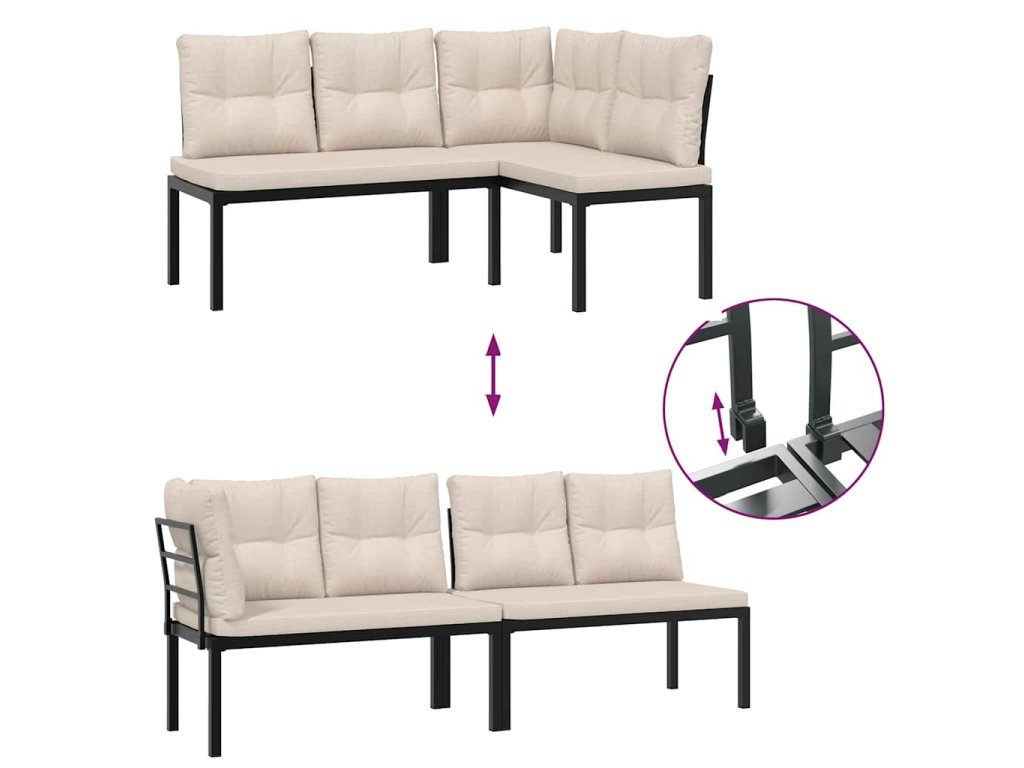 - Modulární design: Tato sada venkovního nábytku se vyznačuje modulární konstrukcí, je tedy zcela flexibilní a lze ji snadno přemisťovat, takže si můžete uspořádat venkovní nábytek dle vašich potřeb.