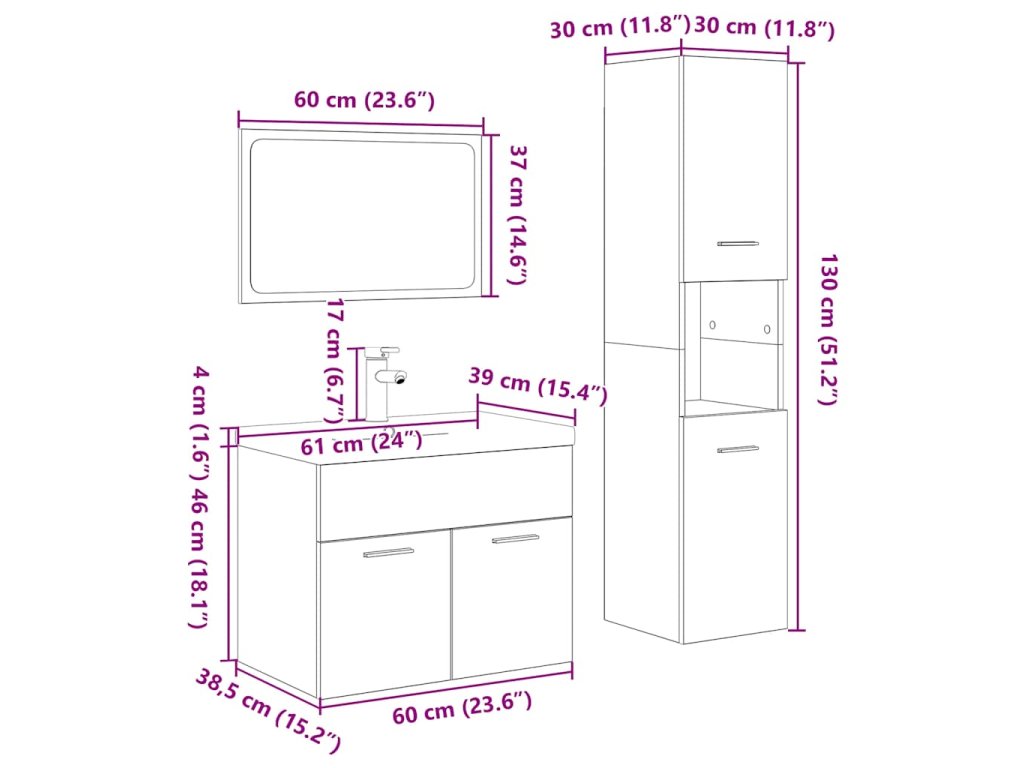 - Rozměry skříňky pod umyvadlo: 60 x 38,5 x 46 cm (Š x H x V)