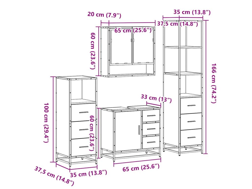 - Rozměry koupelnové skříňky (výška): 35 x 37,5 x 166 cm (Š x H x V)
