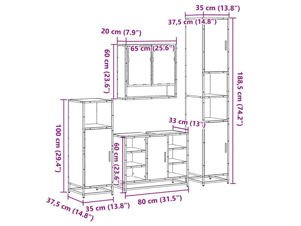 - Rozměry koupelnové skříňky (výška): 35 x 37,5 x 188,5 cm (D x Š x V)