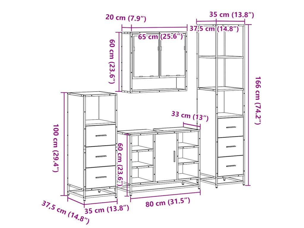 - Rozměry koupelnové skříňky (výška): 35 x 37,5 x 166 cm (Š x H x V)