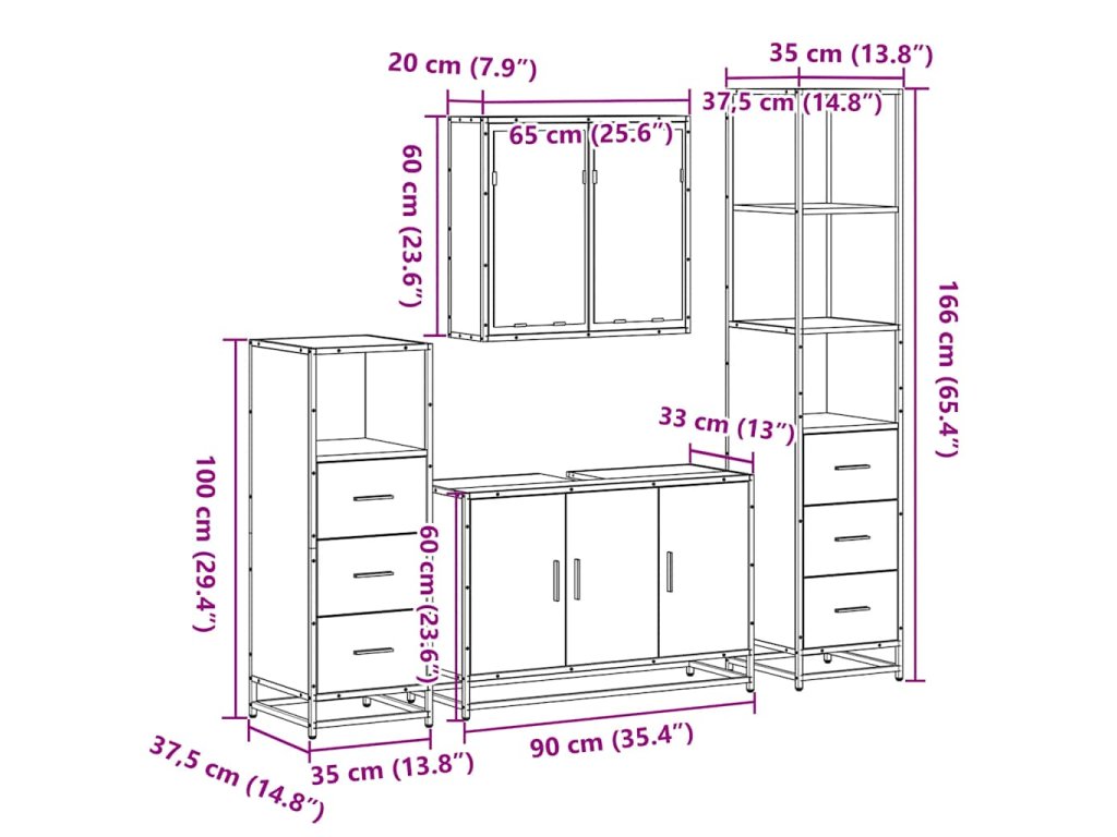 - Rozměry koupelnové skříňky (výška): 35 x 37,5 x 166 cm (Š x H x V)