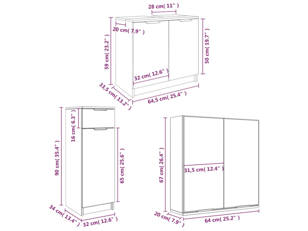 - Rozměry vysoké skříňky: 32 x 34 x 90 cm (D x Š x V)