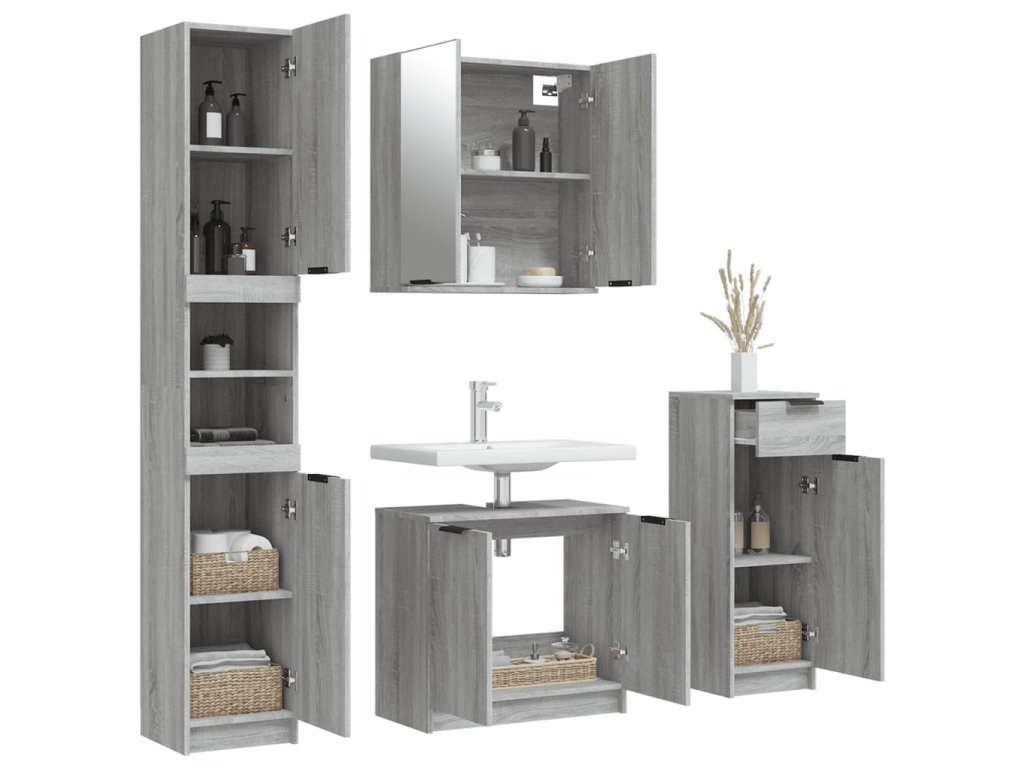 Tato atraktivní sada koupelnových skříněk s velkým úložným prostorem se vyznačuje stylovým i praktickým designem.