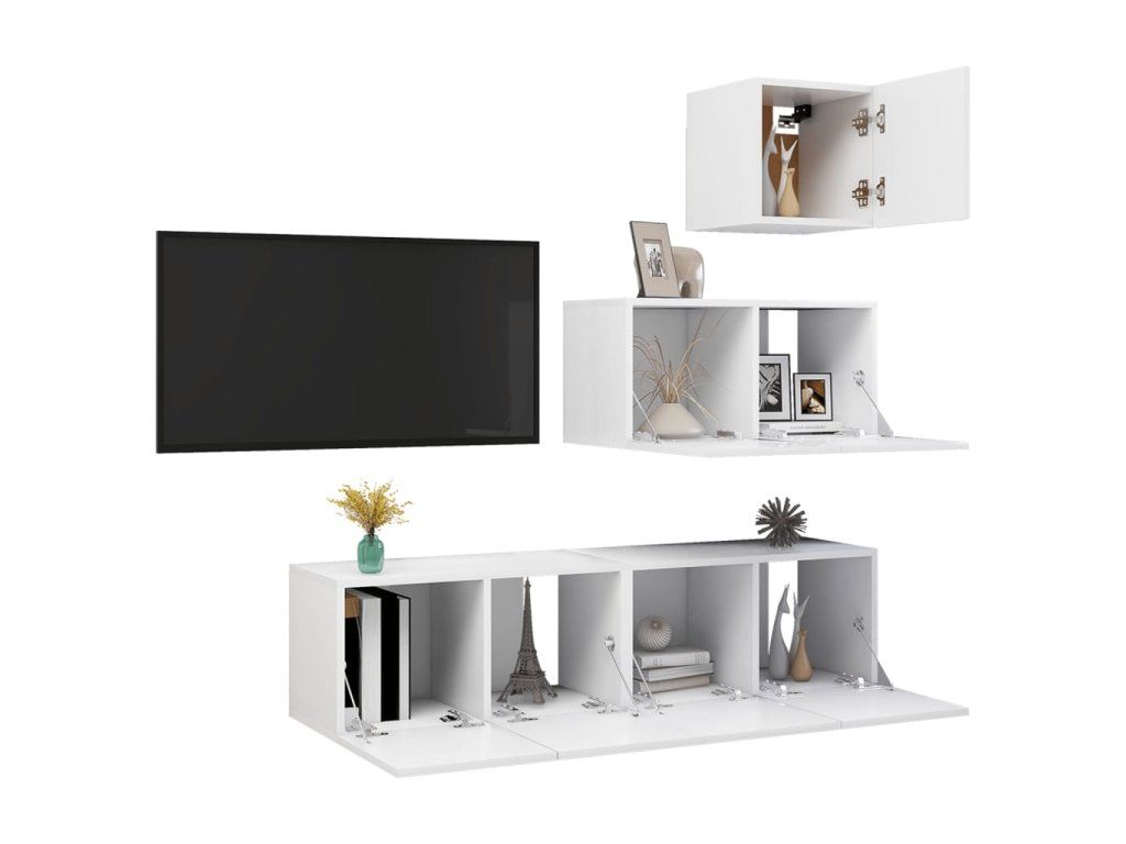 Set závěsných TV skříněk je vyrobený z kompozitního dřeva, takže je robustní a odolný. Skříňky se montují na zeď a budou nadčasovým doplňkem vaší domácnosti. Sada obsahuje několik přihrádek, které nabízí ideální místo na uložení časopisů, DVD nebo jiných věcí. HiFi skříňky lze snadno očistit vlhkým hadříkem.