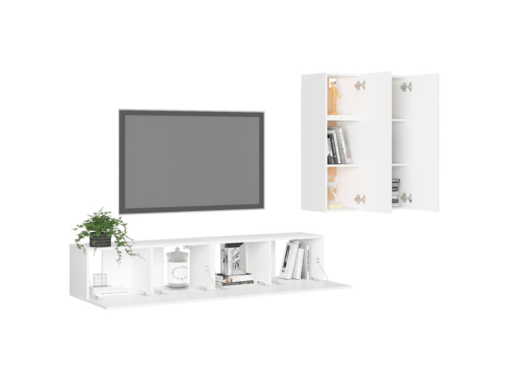 TV skříňky se připevňují ke zdi a vnesou do vašeho domova nadčasový styl. Jsou ideální pro přehledné ukládání a vystavení všech věcí, které si přejete mít hezky po ruce. Sada stereo skříněk se snadno čistí vlhkým hadříkem.