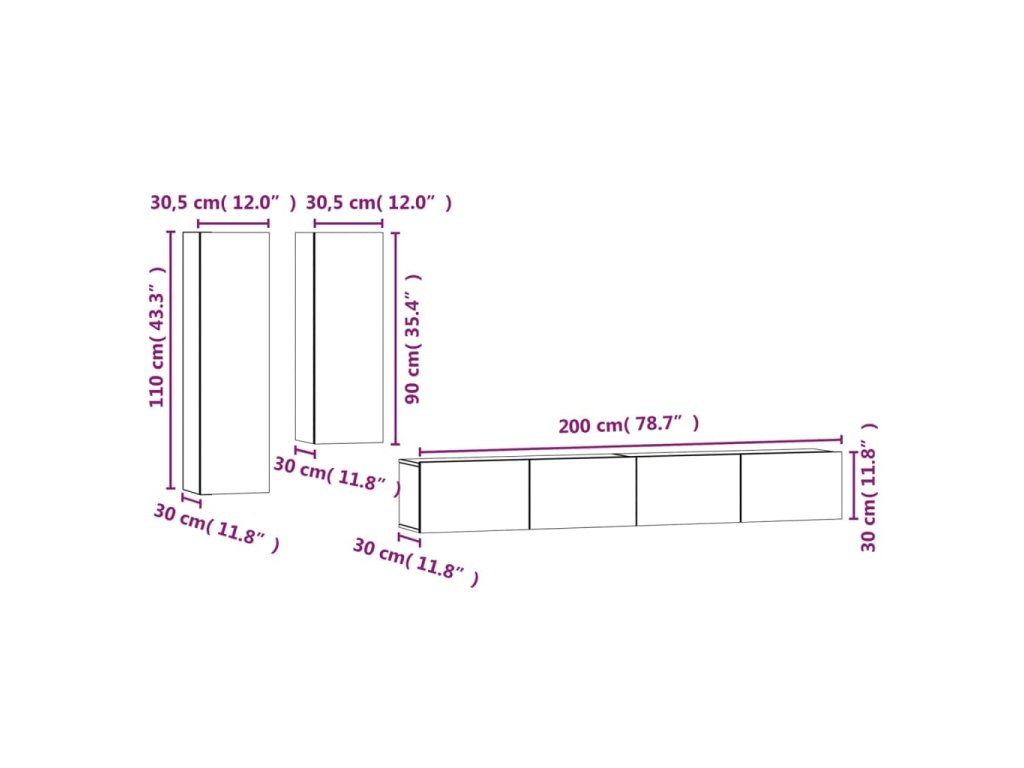 - 1x TV skříňka: 30,5 x 30 x 110 cm (D x Š x V)
