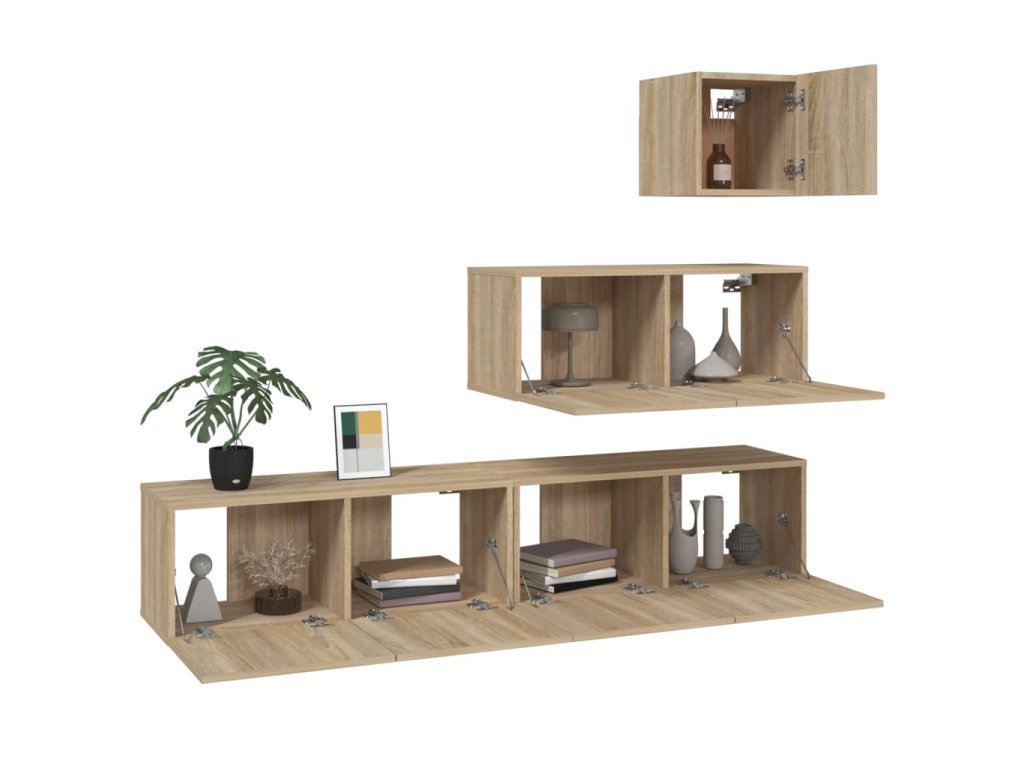 - Dostatek úložného prostoru: Set TV skříněk poskytuje dostatek prostoru pro uložení multimediálních zařízení, DVD přehrávače, nosičů médií, knih a různých menších předmětů.