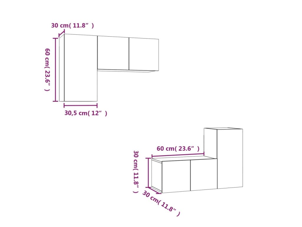 - Rozměry TV skříňky (s 1 dvířky): 30,5 x 30 x 60 cm (Š x H x V)