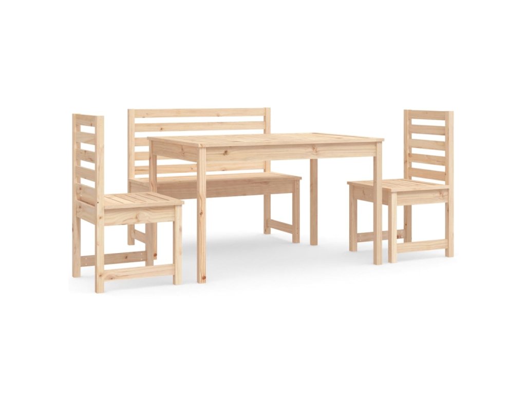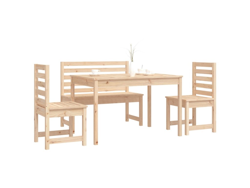 - Masivní borové dřevo: Jídelní set je vyroben z masivní borovice. Masivní borové dřevo je krásný přírodní materiál. Borové dřevo má rovnou kresbu a obsahuje suky, které materiálu dodávají jeho charakteristický, rustikální vzhled.