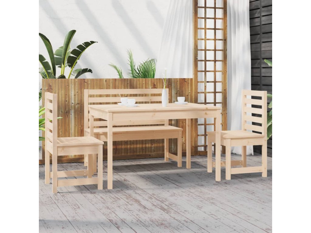 Tento klasický dřevěný zahradní jídelní set je ideální pro venkovní použití a je navržen tak, aby na vaší zahradě, terase nebo dvorku upoutal pozornost.