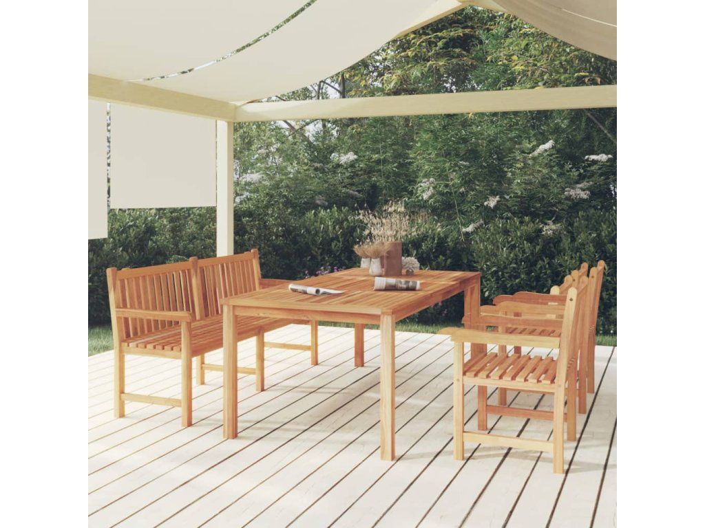 Tento dřevěný zahradní jídelní set s elegantním a moderním designem představuje skvělou volbu pro stolování nebo relaxaci na zahradě.