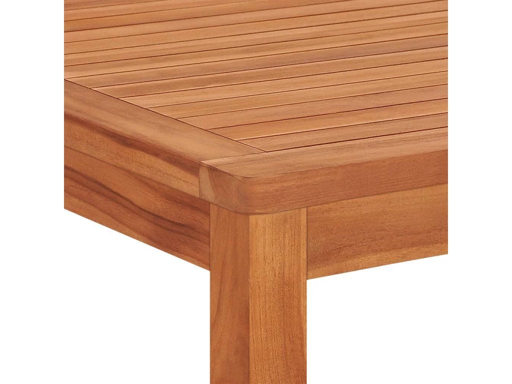 - Masivní teakové dřevo: Masivní teakové dřevo je krásný přírodní materiál. Prošlo již procesem smršťování, bylo uměle vysušené a poté jemně a dohladka obroušené. Teakové dřevo je známé svou výjimečnou pevností a odolností vůči povětrnostním vlivům.