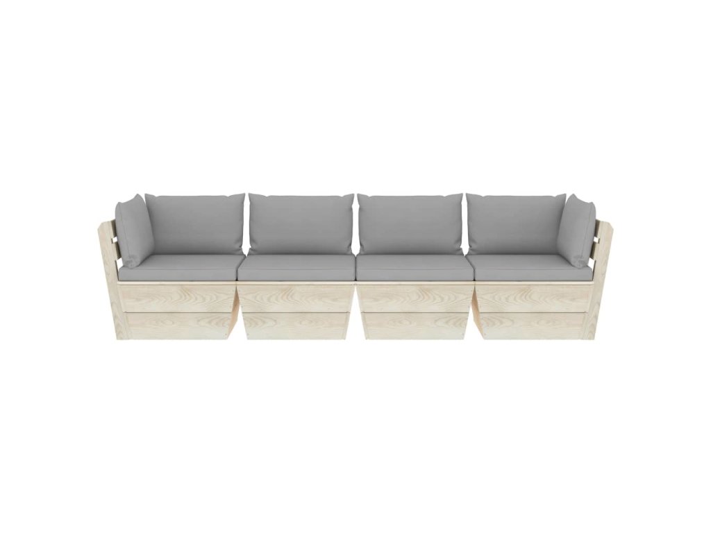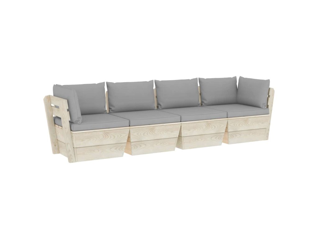 Zahradní sedačka je vyrobená z impregnovaného smrkového dřeva, takže je velice odolná a stabilní. Má pevnou konstrukci a nevyžaduje téměř žádnou údržbu. Podušky na paletový nábytek jsou čalouněné 100% polyesterem a hustě polstrované, takže jsou nesmírně měkké a zajistí vám maximální pohodlí. Zahradní pohovka má modulární design, a tak ji můžete přizpůsobit každému prostředí dle svých představ.