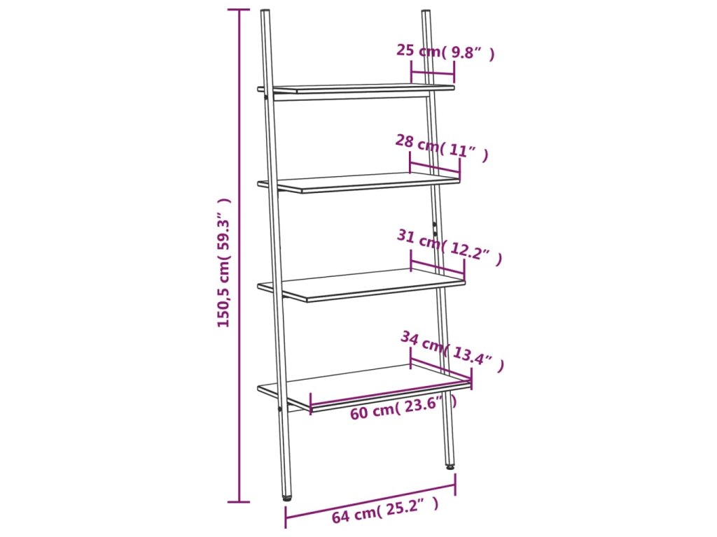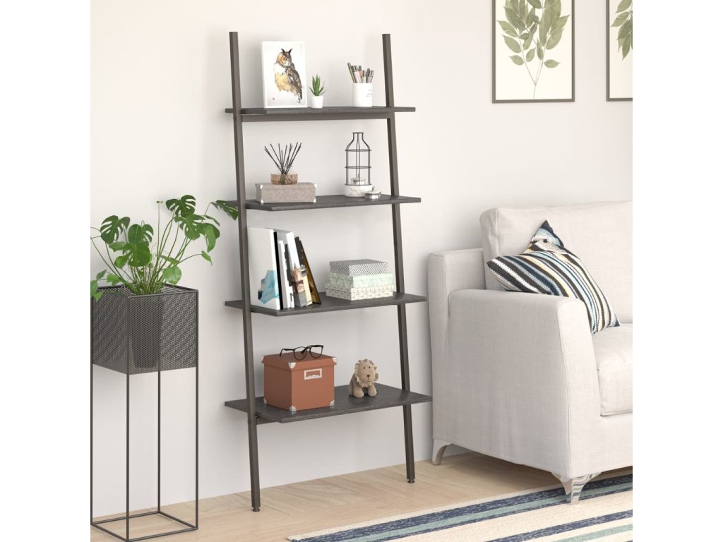 - Nakloněný design: Polici na knihy lze pohodlně opřít o zeď.