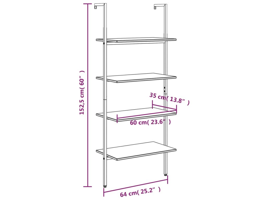 - Nakloněný design: Polici na knihy lze pohodlně opřít o zeď.