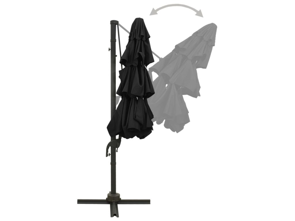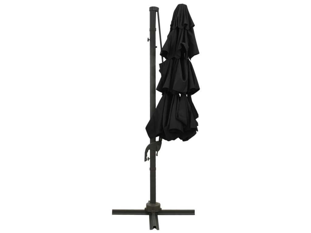Zahradní slunečník je vyrobený polyesteru, který je odolný vůči UV a blednutí barev a poskytne vám optimální ochranu proti slunci. Stabilitu zajišťují práškově lakovaná hliníková tyč a žebra. Slunečník je vybavený klikovým mechanismem a funkcí naklápění, je skládací a přenosný. Můžete ho zasadit do svého stávajícího stojanu nebo doprostřed stolů s otvorem na slunečník.