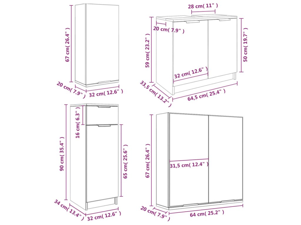 - Rozměry vysoké skříňky: 32 x 34 x 90 cm (D x Š x V)