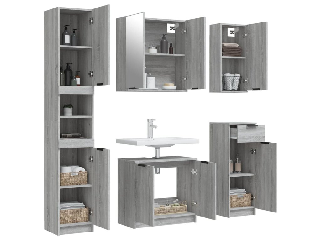 Tato atraktivní sada koupelnových skříněk s velkým úložným prostorem se vyznačuje stylovým i praktickým designem.
