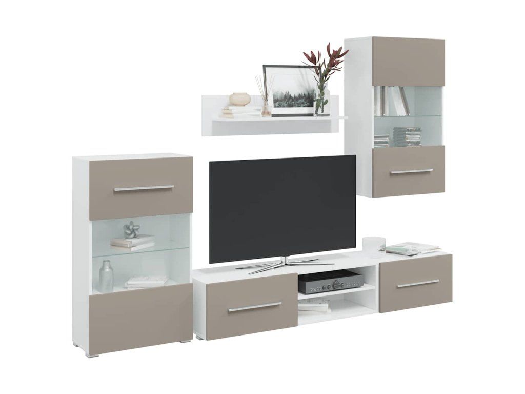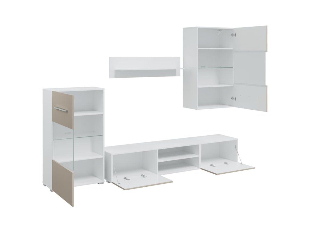 - Dostatek úložného prostoru: Sada obsahuje nástěnnou skříňku, stojící skříňku, dvě nízké desky a nástěnnou polici. Nabízí univerzální úložný prostor pro multimediální zařízení, knihy a menší předměty a zároveň poskytuje prostor pro dekorativní vitríny.