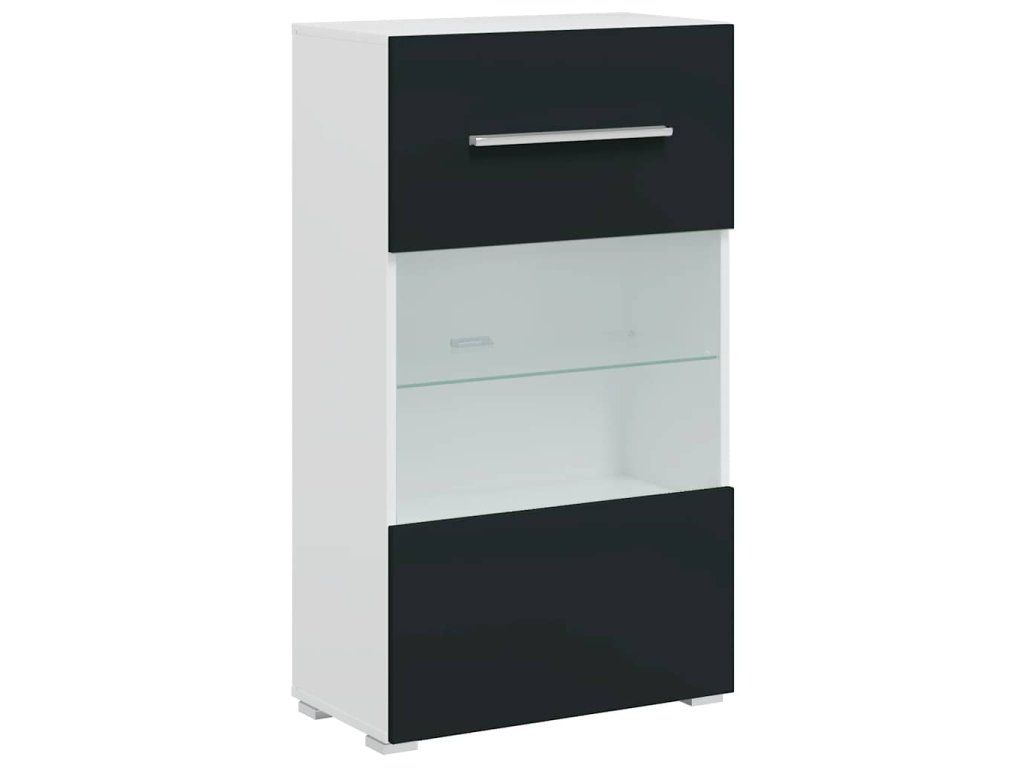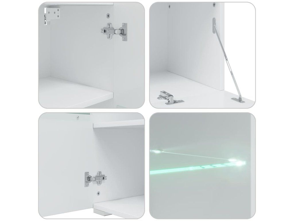 - Vylepšené funkce: Skříňky pod televizor mají výklopná dvířka pro skrytý úložný prostor. Nástěnné a stojanové skříňky mají částečně prosklená dvířka a skleněnou polici s úsporným LED osvětlením, což jim dodává praktičnost i eleganci.