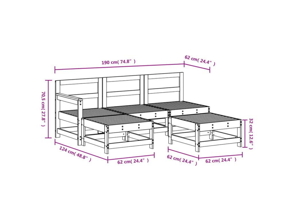 - Rozměry středové pohovky: 62 x 62 x 70,5 cm (Š x H x V)